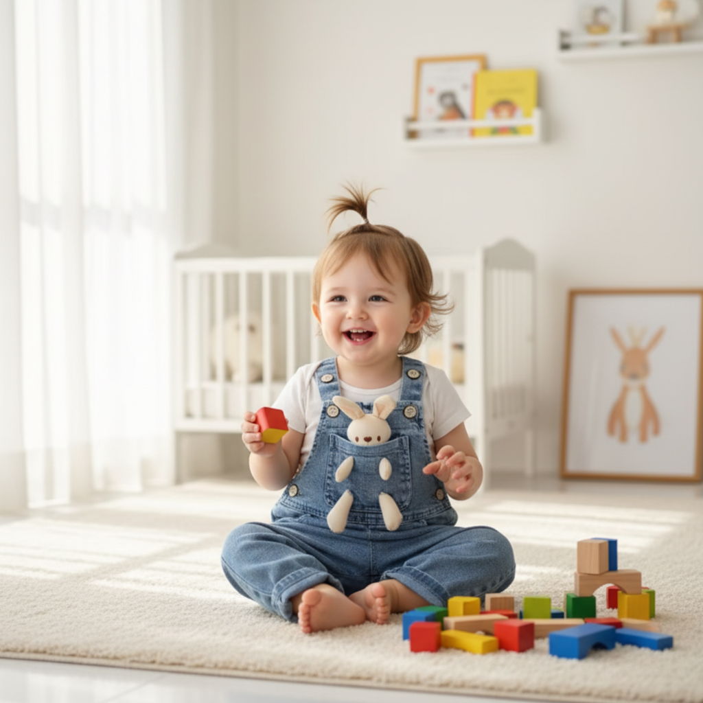 Cute baby overall with a tiny bear