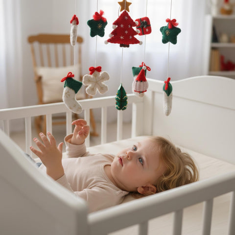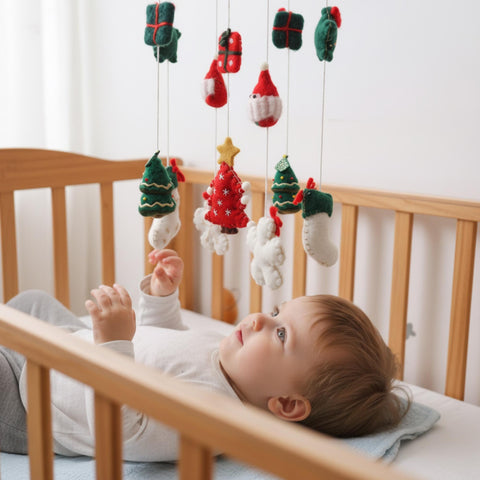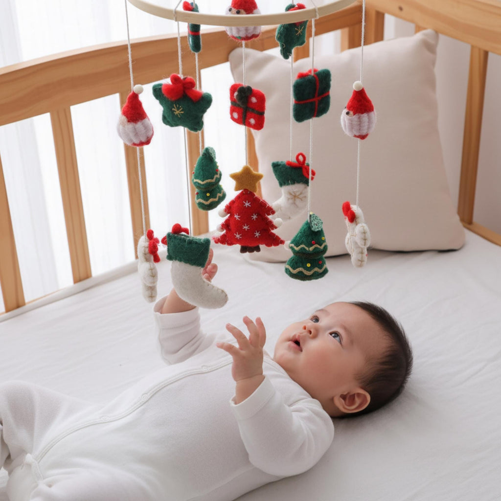 This mobile adds a warm, joyful touch to any nursery or holiday décor, making it perfect for both baby’s first Christmas and cozy winter memories.