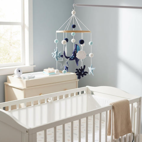 Coastal Baby Mobile: Wool Felt Whale, Sea Life Nursery Decor