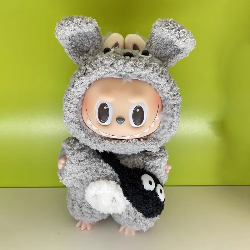 Labubu Totoro Outfit — Grey Fuzzy Doll Clothes (Totoro-inspired)